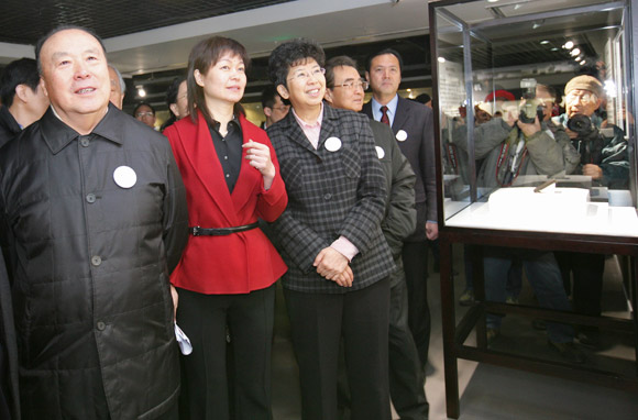 12月20日,全國政協原副主席白立忱,中國文聯黨組書記、副主席趙實,中國文聯黨組成員、書記處書記李前光,在中國攝協主席、分黨組書記王瑤的陪同下,興致勃勃地觀看“同筑中國夢-百年跨越史——中國攝影與科技”大型影像展。吳承歡/攝