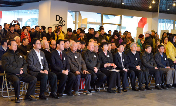 12月20日,中國文聯黨組成員、書記處書記李前光(右一),北京市科委黨組書記、副主任楊偉光(左二),中關村科技園區西城園管理委員會黨組書記、副主任張新華(左一)為中國攝協策展委員會揭牌。陳黎明/攝