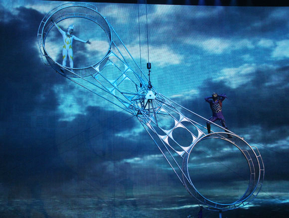 圖為頒獎儀式后,河南省雜技集團的大型雜技劇《水秀》上演,為觀眾呈上一場視覺盛宴。中國文藝網 何瑞涓 攝
