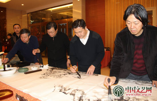 12月28日晚,中國文聯文藝志愿服務團的書畫家們赴南水北調中線工程建設地——河南南陽舉行書畫交流筆會。 中國文藝志愿者協會 桑健博 攝