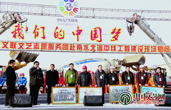 在南水北調中線工程勝利完工和2014年元旦來臨之際,2013年12月28日至29日,中國文聯文藝志愿服務團來到南水北調中線河南段建設工地和湖北丹江口市移民新村,開展了“我們的中國夢——送歡樂下基層”文藝志愿服務活動。