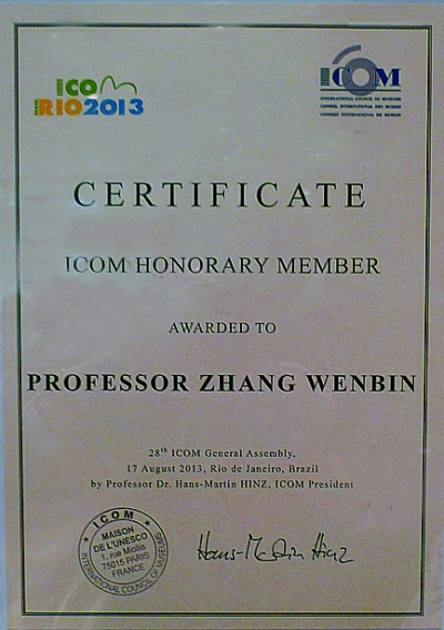 在2013年8月的國際博物館協會第23屆巴西大會的閉幕式上,舉行了一個異常莊重的頒獎儀式:國際博協將其最高榮譽“榮譽會員”授予了兩位為國際博物館事業作出特殊貢獻的博物館人,其中一位是中國國家文物局原局長、中國博物館學會(今中國博物館協會——作者注)原理事長、國際博協中國國家委員會原主席張文彬。當國際博協總干事漢娜·潘內克將榮譽會員證書交給張文彬的代表時,來自世界各地的近1700名代表以長時間的熱烈掌聲,表達對這位德高望重的中國博物館人的敬意,也向這位臥病在床的前輩送上美好祝福,場面十分感人。