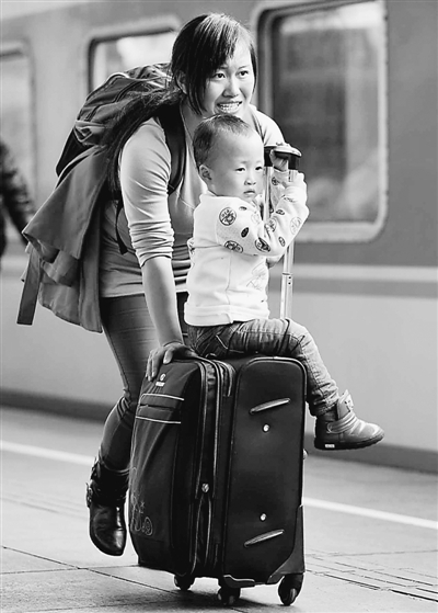 春運期間,廣州火車站,母親帶著孩子趕回老家過年。邱偉榮攝(人民視覺)