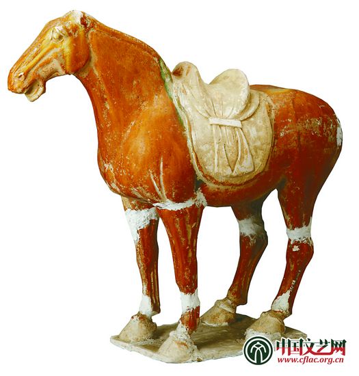 馬作為財富與身份的象征,自商周時期就是一項重要的陪葬物品。不同身份等級的人所乘車輛的馬匹數(shù)量有嚴格的等級控制,這點從天子駕六遺址中便可知曉。從早期真的車馬陪葬到后來的陶馬,其財富的象征意義一直沒有改變。唐代三彩陶器盛行,馬的形象是唐三彩的重要題材。