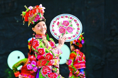 一名彝族演員在表演彝族舞蹈。 新華社發(胡超攝)
