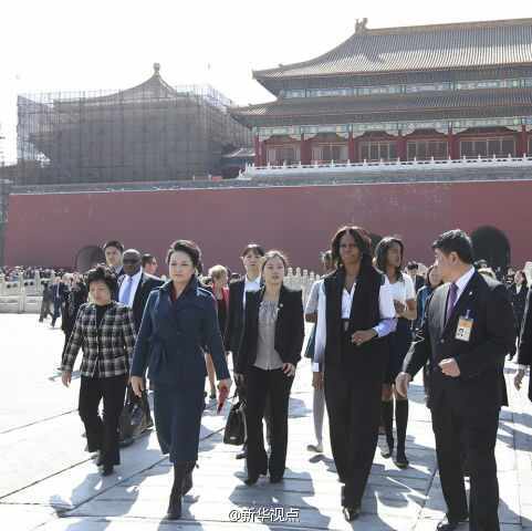 故宮博物院院長(zhǎng)單霽翔介紹說(shuō),故宮三大殿的殿名都取“和”字,體現(xiàn)了中國(guó)文化注重和諧。彭麗媛笑著對(duì)米歇爾說(shuō),中國(guó)人講究“家和萬(wàn)事興”。米歇爾點(diǎn)頭贊同。