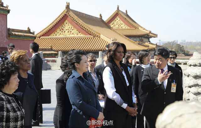 北京3月21日電 據(jù)新華社“新華視點(diǎn)”微博報(bào)道,21日,彭麗媛和米歇爾一起參觀故宮。故宮博物院院長(zhǎng)單霽翔介紹說(shuō),故宮在北京的中軸線上。在美國(guó)華盛頓,國(guó)會(huì)山到林肯紀(jì)念堂也在一條中軸線上,這說(shuō)明中美在建筑和城市規(guī)劃上也有相通之處。