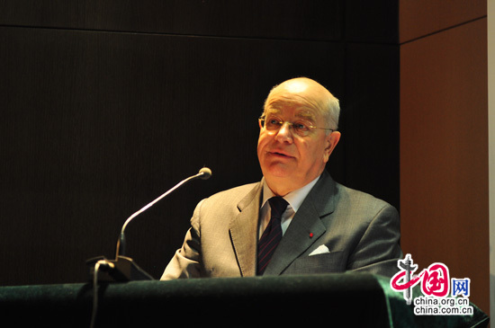 2014年3月26日,《中法建交始末》(法文版)首發(fā)式在巴黎中國文化中心舉辦。法國戴高樂基金會總經(jīng)理弗朗索瓦﹒蓋斯萊將軍在發(fā)表講話。中國網(wǎng)李小華 攝