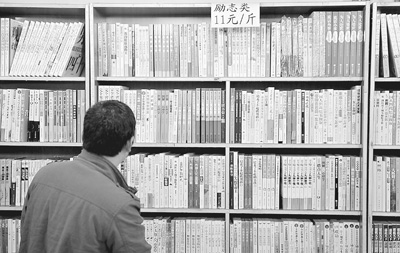 一家書店打出了勵志類圖書論斤出售的廣告。王啟明攝