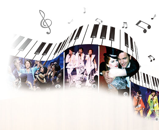 圖①、②、④:音樂劇《媽媽咪呀!》劇照。圖③:音樂劇《紅磨坊》劇照。[資料圖片]