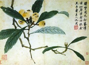 從嚴格意義上來說,吳門派的花鳥畫是對前代的延續,并沒有開宗立派的意義。然而,到吳門派的弟子一代,花鳥畫在陳淳、陸治、周之冕那里結出了碩果。陳淳早年習元代繪畫,后學于文徵明,花鳥山水兼擅。他將書法和山水畫筆法融入花鳥畫,運用水墨的干濕濃淡和滲透,巧妙地表現花葉的形態與陰陽向背,簡練放逸又不失法度,開寫意花鳥一代新風。如果說陳淳的大寫意花鳥充分表達了筆墨的特性與畫面的形式感,那么徐渭的作品則充分發揮了大寫意花鳥托物言志、澆胸中之塊壘的激情澎湃。在語言風格方面,他吸收宋、元文人畫及林良、沈周、陳淳的長處,兼融民間畫師的優點,同時將自己擅長的狂草筆法融入繪畫。在他筆下,梅蘭竹石被賦予了他強烈的個性,以狂怪奇崛的姿態傲視萬物。他是第一個使用生宣作畫的花鳥畫家,利用生宣良好的吸水性控制畫面水墨滲化效果表達特殊韻味。他還以潑墨法作花鳥,用筆墨的縱橫捭闔表達自身的憤懣情緒。徐渭開創了大寫意花鳥的新體派,后世的八大山人、石濤、揚州八怪、海派乃至齊白石都曾受其影響。由于他的成就超越了早于他的陳淳,后世將他的號置于陳淳之前,將這兩位大寫意花鳥畫家并稱為“青藤白陽”。