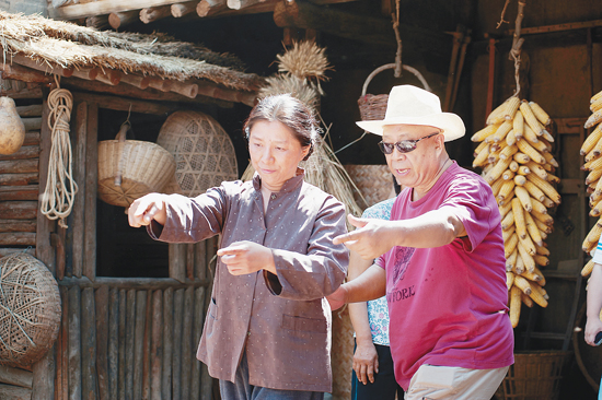 吳天明(右)執(zhí)導(dǎo)電影《百鳥(niǎo)朝鳳》