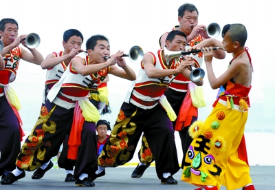 大襠褲、兜肚、綁腿,這是黃河岸邊山西吉縣嗩吶人最具特色的標志;高亢激昂、粗獷豪放、原生態展示,這是吉縣嗩吶表演的特色。目前,吉縣嗩吶已入選山西省非物質文化遺產名錄。