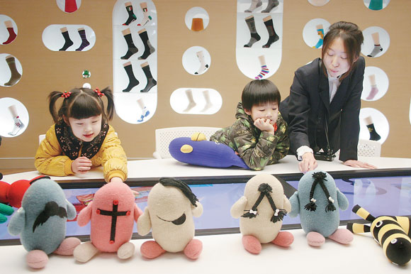 1月20日,北京首家襪文化博物館——北京日盛襪文化博物館正式落成迎客。該博物館位于北京房山區,占地3200平方米,博物館內設立了歷史館、科技館、體驗館、未來館以及“心地大廳”五大展區,向公眾集中展現了與襪文化相關的實物、圖片和聲光電信息。圖為當日工作人員帶領小朋友在未來館參觀體驗。