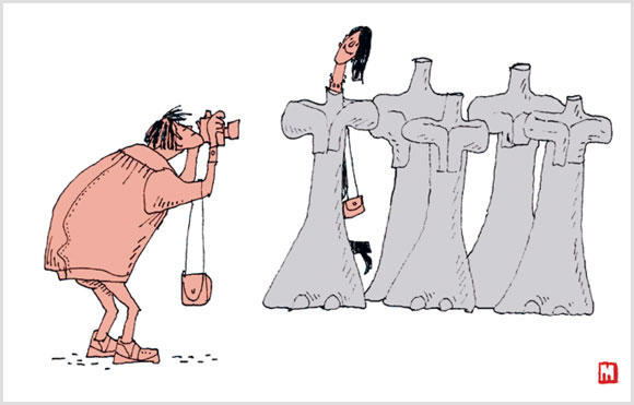 有年去某地訪古,在古代陵墓前看到許多無頭的石人在佇立著,還有幾個年輕人來此拍照取樂,給無頭石像“換頭”。看到這里令人啼笑皆非,此情此景定格在我的記憶之中。