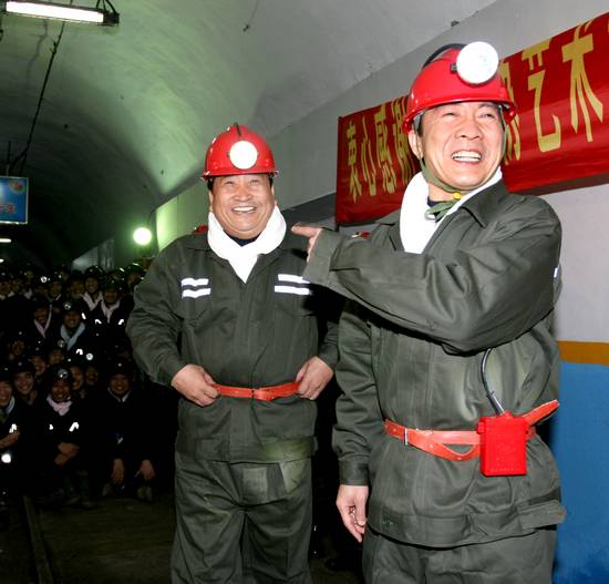 2009年3月,著名曲藝表演藝術(shù)家姜昆、戴志誠到新集煤礦井下為工人們演出 。攝影:張生福