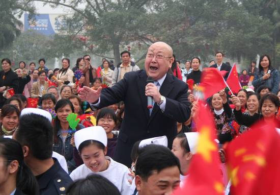 2010年1月,著名京劇表演藝術(shù)家尚長榮走進(jìn)觀眾中演唱《自己的隊伍來到面前》。攝影:高揚(yáng)