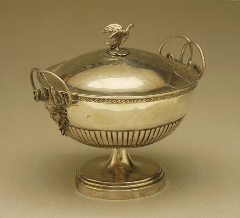 裝飾有美杜莎頭像及蛇形把手的銀質湯盤,銀器,19世紀。