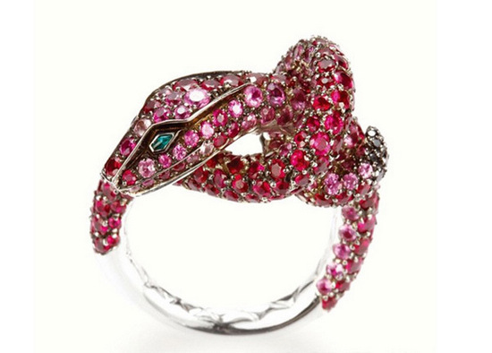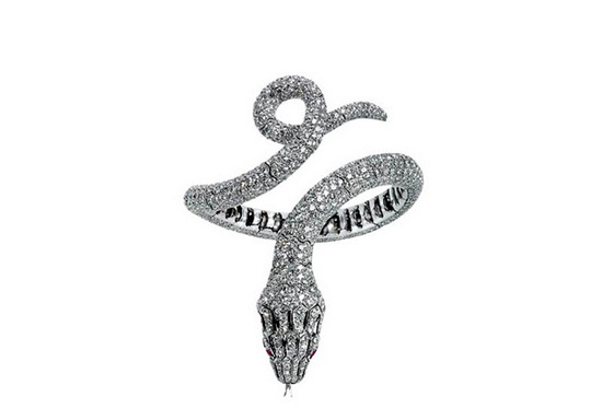 蛇是頗具靈性的生物,古時便有將靈蛇比喻才華橫溢之人的說法。這些看似兇猛的靈獸,在珠寶設計師眼里卻宛若蛟龍,憑借高超的珠寶工藝,將他們塑造成項鏈、指環、耳環等精美首飾,佩戴之余也有征服猛獸的勝利感吧,在2013蛇年,蛇形珠寶想必也會大熱一把。