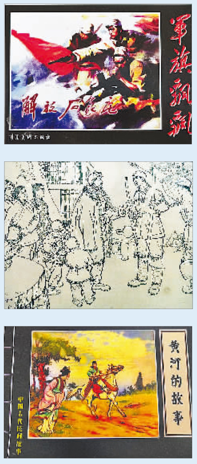 “紅色故事繪——連環畫里的新中國70年”展覽展出的連環畫及手稿 李錦云攝/光明圖片
