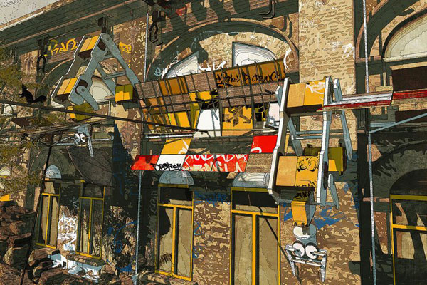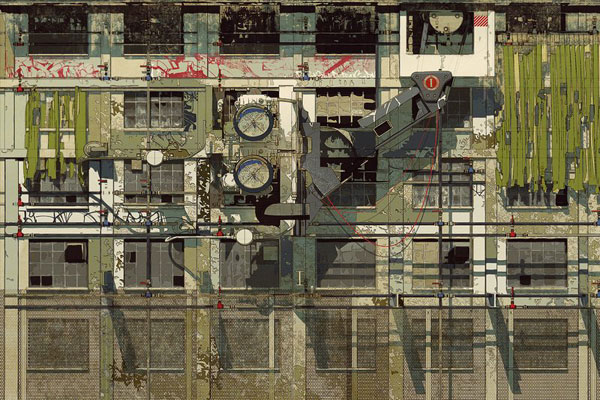這些破舊的建筑立面作品出自藝術家Lekan Jeyifo,他來自布魯克林,是一位三維渲染師與數碼插畫家。這個系列作品用三維的表現手法再現了一座城市中廢棄的建筑立面,以及依附在立面上的破舊的設備設施。畫面充滿了科幻的色彩與豐富的設計細節,那些被腐蝕的設施好像還在運轉,那些斑駁的墻面卻在勉強地支撐著。
