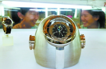 由我國(guó)自主設(shè)計(jì)研制的、曾隨“神舟七號(hào)”飛船遨游太空的航天手表亮相博覽會(huì)。 賈同軍攝