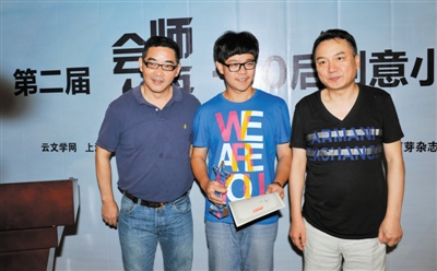大賽狀元譚帥從自己的啟蒙者蘇童手里接過證書。