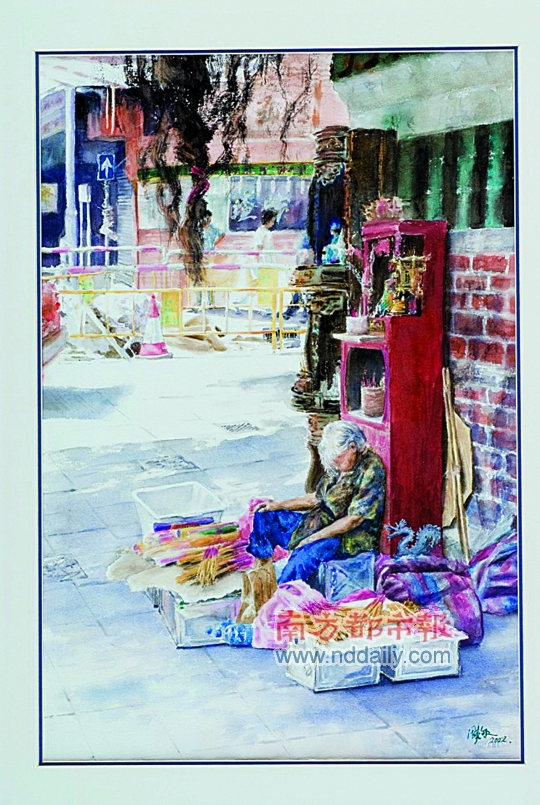 周慧敏透露畫畫前習慣四處找景,先拍照回家看照片找靈感,因此也曾遭遇尷尬事件,“記得02年為了參加油尖旺香港水彩畫邀請展,自己獨個帶著相機走遍了油麻地、旺角和尖沙咀的大街小巷拍照找靈感。當我在拍廟街地攤賣香燭的老婆婆在打盹時,她突然抬高頭發現我,誤會我是記者兼來意不善,想集合街坊把我趕走,后來經過一番解釋,她知道我是找素材畫畫,又認出我,她反而邀請我多拍,很幫忙?!?/p>
