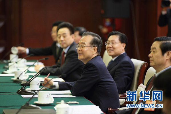 (兩會授權發布)溫家寶在四川代表團聽取代表審議