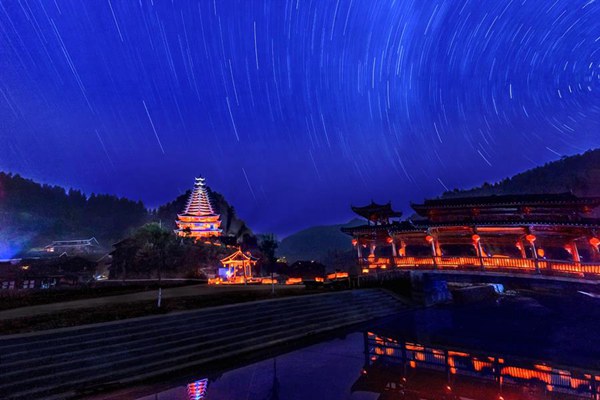 地筍苗寨有128棟吊腳樓,樓房沿山坡建造,層層上升,步步登高,展現(xiàn)出典型的花苗民居特色;青石板路層層疊疊,連接著每家每戶。地筍苗歌的聲部也由低到高,聲音層層疊疊,和這里的環(huán)境交相呼應(yīng)。于是人們就用了這個(gè)極度符合地筍苗寨氣質(zhì)的“鼟”字。