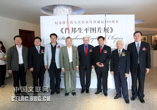 10月12日,由波蘭共和國駐華大使館、中國文聯和中國音協聯合主辦的《紀念波蘭偉大音樂家肖邦誕辰200周年——肖邦生平圖片展》在中國文藝家之家開幕。圖為出席開幕式的領導合影。張大勇 攝