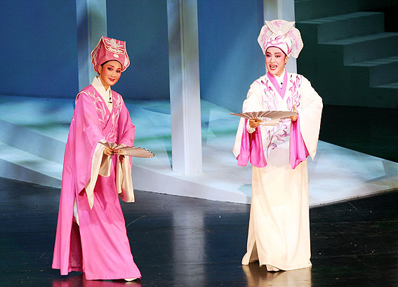 茅威濤、陳曉紅演唱新版越劇《梁山伯與祝英臺》選段。高揚 攝