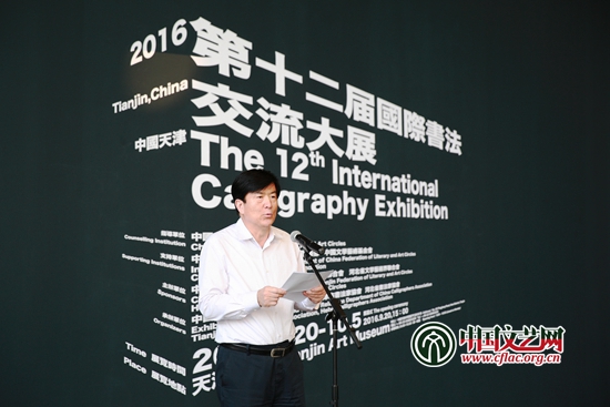 中國文聯(lián)黨組副書記、副主席李屹,天津市人大常委會副主任茍利軍,中國書協(xié)主席蘇士澍,中國文聯(lián)國際聯(lián)絡(luò)部主任董占順,天津市委宣傳部副部長石剛,天津市文聯(lián)黨組書記、常務(wù)副主席萬鏡明,河北省文聯(lián)黨組書記、副主席解曉勇,中國文學(xué)藝術(shù)基金會副秘書長郭希敏等領(lǐng)導(dǎo)出席開幕式。開幕式由中國書協(xié)分黨組書記、駐會副主席陳洪武主持。萬鏡明首先致歡迎詞。