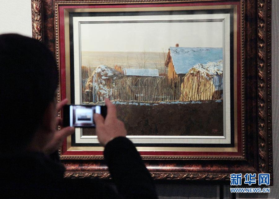 ?  11月20日,在德國柏林,一名觀眾在“中國美術世界行——中國當代美術精品展”上拍攝畫作。當天,作為2012德國“中國文化年”系列活動重頭戲的“中國美術世界行——中國當代美術精品展”在柏林中國文化中心舉行,本次展覽共匯集中國當代美術名家的40余件精品力作,以西部題材為主要展示內容,讓德國觀眾更好地了解中國西部悠久的歷史文化。(新華社記者 潘旭 攝)
