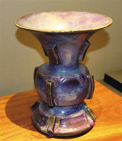 元至明初鈞窯玫瑰紫釉出戟尊,河南省文物考古研究院藏。