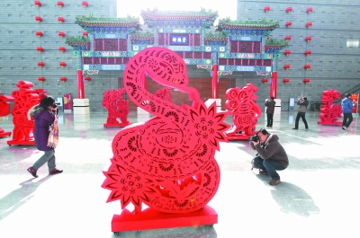 春節(jié)期間,觀眾在充滿年味的首都博物館參觀拍照。