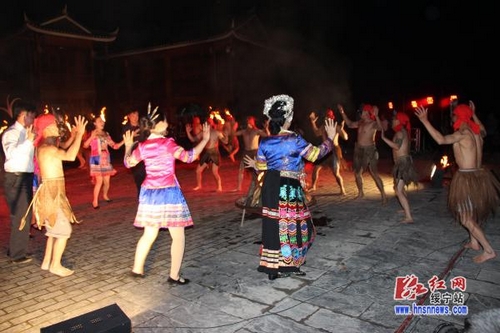 “狂歡苗家"四八",體驗神奇黃桑”。5月17日至19日,綏寧縣隆重舉行苗族“四·八姑娘節(jié)”。圍繞“好客苗姑、千年苗俗、傳統(tǒng)苗藝、精彩苗技”,該縣在關峽苗族鄉(xiāng)、黃桑坪苗族鄉(xiāng)、寨市苗族侗族鄉(xiāng)三個民族鄉(xiāng)舉行一系列具有苗族風情特色的活動。在大園、上堡等村寨,多情的苗姑為歡迎尊貴的客人,捧起了醇濃撲鼻的攔門酒,搭起了豐盛絕倫的合攏宴,端出了香氣清馥的油茶,烹出了誘人垂涎的烏米飯,唱起了纏綿婉轉的苗家山歌,挑起了熱情火辣的蘆笙舞。游客們除了欣賞到苗族婚俗、侗寨夜歌、祭火、祭狗、苗王背媳婦、苗族插繡、儺舞及草龍舞等古老苗俗,還親自參與捉魚、爬古藤、穿情侶同心鞋、挑戰(zhàn)苗家大力士和吹木葉、對山歌等苗鄉(xiāng)民俗活動。民情風情文藝匯演讓游客置身神秘苗鄉(xiāng)的美麗夢境,感受多姿多彩的苗家文化;琳瑯滿目的非物質文化遺產攤點,為游客展示剪紙、苗繡、雕花蜜餞等傳統(tǒng)苗族手工藝以及香菇、木耳、干筍、米酒、臘肉、烏米飯、青錢柳等傳統(tǒng)苗鄉(xiāng)特產。苗家斗高腳馬、蕩秋千、摔跤、打地老鼠、苗家大力士擂臺賽等精彩苗家特技讓廣大游客大飽眼福;紅紅的篝火、濃濃的鼓聲、古老的儺舞,更是讓廣大游客激情狂歡。