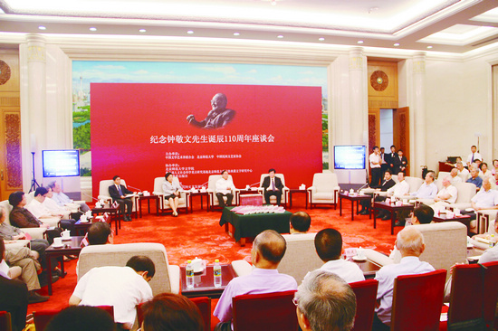 為紀(jì)念我國著名民間文藝學(xué)家、民俗學(xué)家、教育家、詩人、散文家,中國文聯(lián)榮譽(yù)委員、中國民協(xié)第四屆主席,北京師范大學(xué)一級(jí)教授鐘敬文先生誕辰110周年,由中國文聯(lián)、北京師范大學(xué)、中國民協(xié)等共同主辦的紀(jì)念鐘敬文先生誕辰110周年座談會(huì)于6月29日在北京人民大會(huì)堂隆重舉行。中國文聯(lián)名譽(yù)主席周巍峙,中國文聯(lián)黨組副書記、副主席李屹,中國民協(xié)分黨組書記、駐會(huì)副主席羅楊,北京師范大學(xué)黨委書記劉川生等出席座談會(huì)并講話(部分講話詳見第二版)。座談會(huì)由北京師范大學(xué)校長董奇主持。