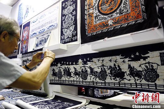 7月11日,“多彩貴州 ·貴州民族民間手工藝品走進北京” 活動在北京798舉行。這是該活動第三次來到京城,今年的主題為貴州臘染,現場還有刺繡、銀飾等眾多來自貴州山野的非物質文化的傳人們展示絕活,與觀眾互動交流。中新社發 富田 攝