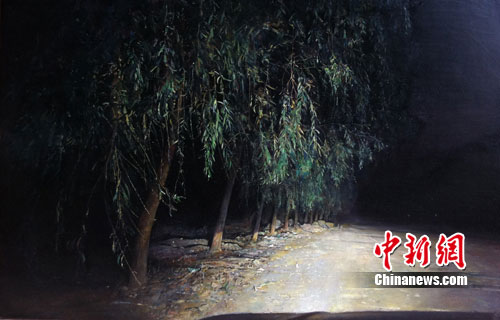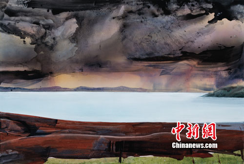 參展藝術家之一、中央美院教師劉商英的作品是西藏組圖。“西藏的圣湖,到那里,感覺受到了洗禮,印象非常強,無法抵御的感覺。”劉商英向中新網記者介紹《圣湖》時說:“這幅畫,我沒有按照照片去畫,我沒有當成一般意義上的風景繪畫去畫,主要是畫心里的感受。那種感覺是西藏的天空當時烏云翻滾與平靜的湖面形成反差,讓人好像升騰,不在現實世界的感覺。我希望用繪畫語言的不真實感表現當時的真實?!?/p>