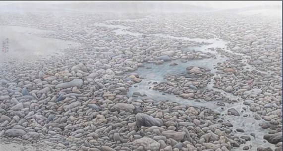 ????“清泉石上流——李留海畫展”24日在北京民族文化宮舉行。以石入畫是中國畫的一個傳統,但多少代畫家的興趣只在巉巖怪石,對河灘上的卵石不屑一顧。河洛之子李留海創作的石水畫,在中國畫歷史上留下了新的一頁,普通的河卵石因他的創作而被賦與了美麗的藝術生命。李留海另一令觀眾駐足的作品是組畫《馬街書會》,眾多神情畢肖的普通百姓、宏大的場面、頗具匠心的構圖,洋溢著一股撲面而來的現實生活氣息。
