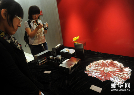參觀者在欣賞將在展覽中亮相的部分展品。