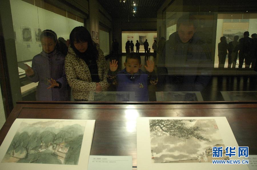 ????12月28日,參觀者在“傅抱石畫展”上參觀。當日,在山西博物院舉行的“傅抱石畫展”上,20世紀中國畫壇杰出的藝術大師傅抱石的90件(組)作品吸引了眾多游客前來參觀。這次展覽由山西博物院與南京博物院共同舉辦,囊括了傅抱石先生中晚年優(yōu)秀代表作,涉及山水畫、人物畫、篆刻及文稿等多種類型。(新華社記者 王學濤 攝)