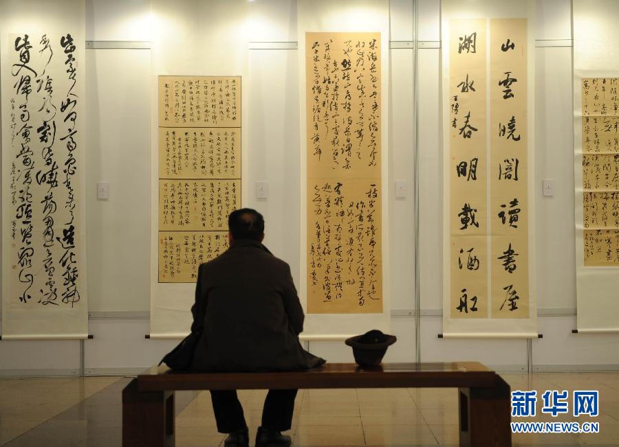 ??? 1月20日,觀眾在河北省博物館參觀行書作品。當日,河北省首屆行書大展在河北省博物館開幕。此次共展出160多件作品,展覽將持續(xù)至2月26日結束。(新華社發(fā) 王曉攝)