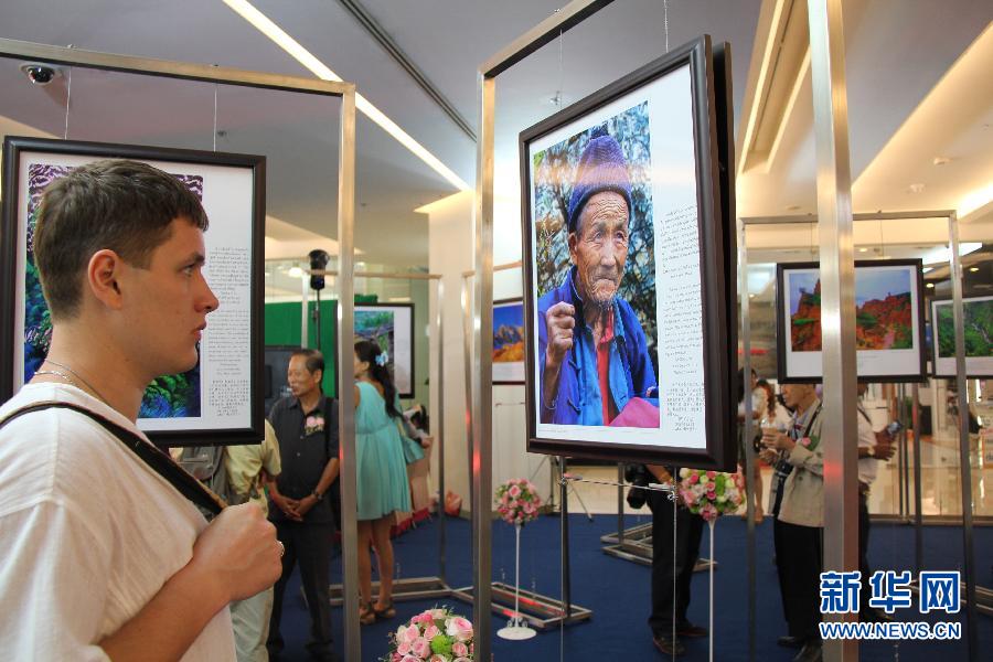 ????2月8日,人們在泰國首都曼谷舉行的“精彩云南”圖片展上參觀。當天,“精彩云南”圖片展在泰國首都曼谷的帕拉宮商場開展,展出由僑居泰國多年的著名華裔攝影師劉霽緯拍攝的100幅反映云南獨特風景、文化古跡和人文傳統的圖片,配有泰國著名佛學家武提猜·伐札梅諦題寫的箴言。(新華社記者 黎藜 攝)