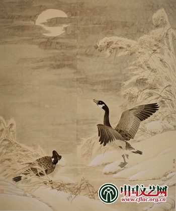 《雪汀蘆禽》圖軸 周望作品 絹本 水墨 220cmx200cm 2013年