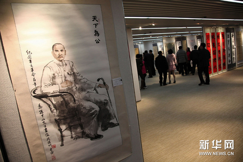 12月13日,觀眾在紀念辛亥革命100周年兩岸四地書畫展上參觀。