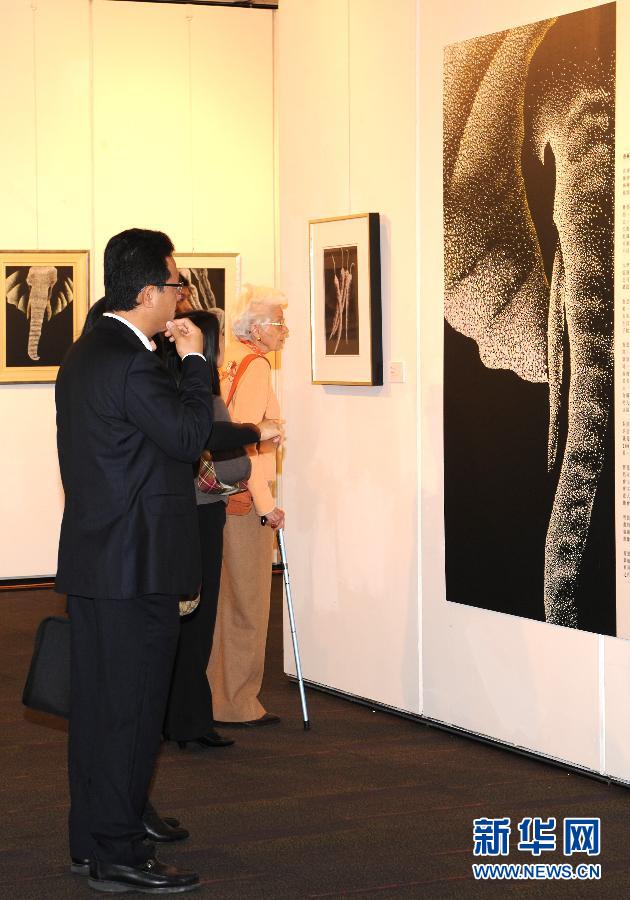??? 2月18日,參觀者在“陳氏三代藝術(shù)展”上欣賞作品。當(dāng)日,“陳氏三代藝術(shù)展”在香港大會(huì)堂展覽廳揭幕。展出全國(guó)歸國(guó)華僑聯(lián)合會(huì)副主席陳友慶夫人陳沈時(shí)芬、次子陳智思和長(zhǎng)孫女陳曉鈴三代藝術(shù)家的作品。(新華社記者 黃本強(qiáng) 攝)