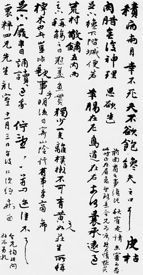 “積病兩月,幸不死。天不欲飽饞夫之口耳。皮枯肉臘,無復神理。……線下階磩,便若羊腸在左,鳥道在右。奈何。……令兄均此問好,不另禮”。(如圖3所示)