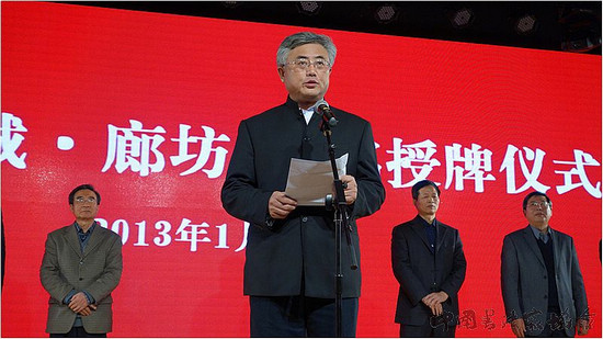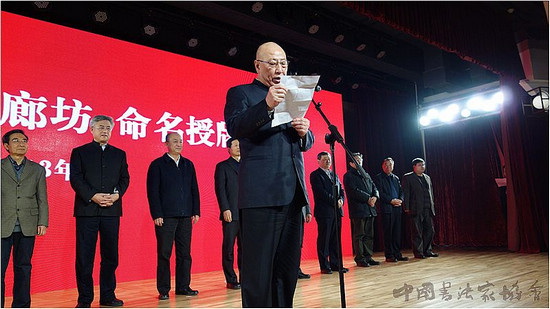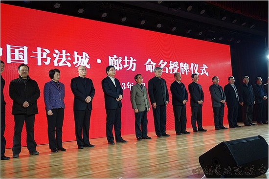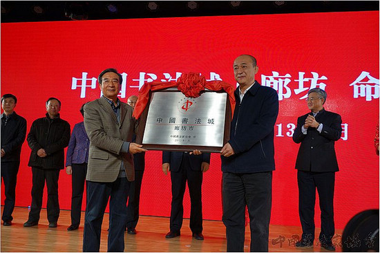 授牌儀式上,張陸一代表中國(guó)書協(xié)宣讀《關(guān)于命名廊坊市為中國(guó)書法城的決定》。趙長(zhǎng)青在講話中對(duì)廊坊市獲得“中國(guó)書法城”表示祝賀,他說:廊坊地處京畿腹地,歷史悠久,文化積淀厚重,滋養(yǎng)了眾多燕趙風(fēng)骨的名人志士。近年來,廊坊的書法事業(yè)快速發(fā)展,書法團(tuán)隊(duì)異軍突起,在全國(guó)重大書法展覽和評(píng)獎(jiǎng)中取得了可喜的成績(jī),從中可以看出,廊坊市高度重視文化建設(shè),把發(fā)展繁榮書法藝術(shù)作為“文化強(qiáng)市”建設(shè)的重要組成部分。衷心希望廊坊市以成功創(chuàng)建“中國(guó)書法城”為契機(jī),總結(jié)經(jīng)驗(yàn),著眼未來,開展面向全國(guó)具有廊坊特色的書法活動(dòng),提升檔次,擴(kuò)大影響,使書法藝術(shù)真正成為廊坊文化建設(shè)的標(biāo)志性品牌,為書法事業(yè)的大發(fā)展大繁榮做出貢獻(xiàn)。相金科、馮紹慧分別代表河北省委宣傳部、廊坊市委發(fā)表了講話。